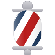Five die-cut vinyl stickers. Barber pole, logo, and taglines.